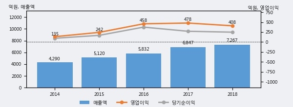 최근 3년간의 실적을 살펴보면 안정적 성장세를 보이고 있다. 최근 3년간 매출로 볼 때 매년 꾸준히 증가하고 있다. 다만 최근에 그 증가폭이 다소 감소하고 있다.