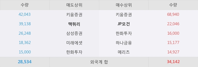 거래원 동향은 JP모건, 하나금융, 메리츠 등이 매수 상위 목록에 나타나고 있다. 한편, 매도 창구 상위에는 맥쿼리가 눈에 띄고 있다.