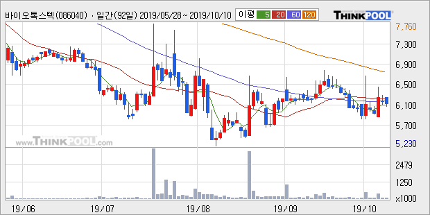 차트상 주가의 흐름은 단기 이평선이 역배열을 만들며 조정을 받다가 다시 상승으로 돌아선 모습이다. 최근 이 종목의 차트에서 캔들패턴(상승반전형), 최근 5일 매물대 돌파 등의 특이사항이 발생했다.