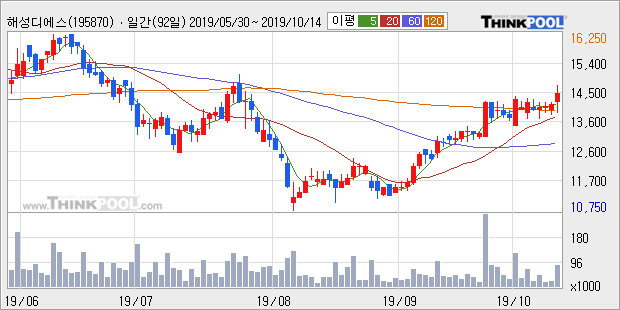일봉 차트의 모습은 현재 단기·중기 이평선이 정배열 상태로 전형적인 상승세를 보이고 있다.