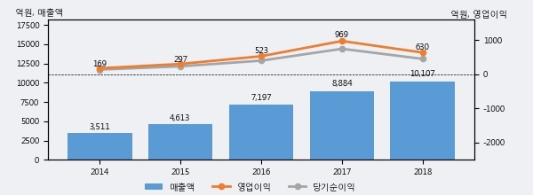 최근 3년간의 실적을 살펴보면 안정적 성장세를 보이고 있다. 최근 3년간 매출로 볼 때 매년 꾸준히 증가하고 있다. 다만 최근에 그 증가폭이 다소 감소하고 있다.
