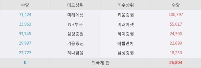거래원 동향은 메릴린치, 미래에셋, 삼성증권 등이 매수 상위 목록에 나타나고 있다.