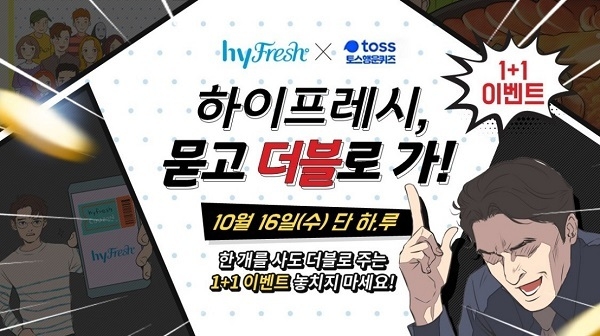 (조세금융신문=김명우 기자) 한국야쿠르트의 모바일 신선마켓 하이프레시는 최근 화제인 '묻고 더블로 가'를 컨셉으로 1+1할인 이벤트 '묻고 더블로가'를 실시한다고 밝혔다.