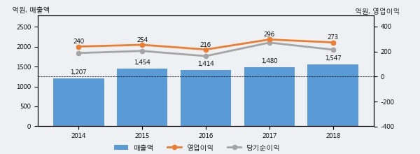 최근 실적을 살펴보면 2018년 매출액이 최근 5년 중 가장 높은 실적을 기록했음을 알 수 있다. 이전 최고 실적이었던 2017년 보다도 4.5%(67억 1천만원) 늘어난 것으로 나타났다.