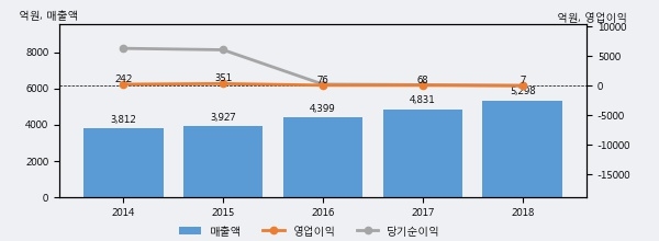 최근 3년간의 실적을 살펴보면 안정적 성장세를 보이고 있다. 최근 3년간 매출로 볼 때 매년 꾸준히 증가하고 있다. 다만 최근에 그 증가폭이 다소 감소하고 있다.