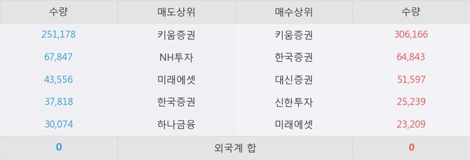 이 시각 주요 거래원은 미래에셋, 키움증권, 한국증권 등이 매수 상위 창구에 자리하고 있다.
