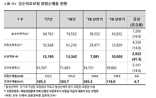 반면 손실액은 2019년 상반기 1조 3억원으로 2018년 상반기 7081억원 대비 2922억원 증가(41.3%)했다. 손해율도 건강보험 보장성강화대책 시행(2017년 8월) 이후 지난해까지는 소폭 하락하다 올해 상반기에 급등했다.