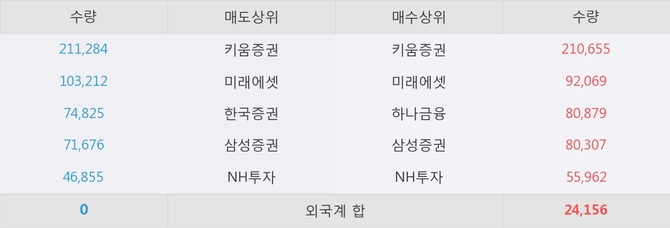 거래원 동향은 미래에셋, 하나금융, 삼성증권 등이 매수 상위 목록에 나타나고 있다.