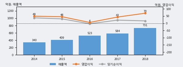 최근 3년간의 실적을 살펴보면 안정적 성장세를 보이고 있다. 최근 3년간 매출로 볼 때 매년 꾸준히 증가하고 있고 그 증가폭도 확대되고 있다.