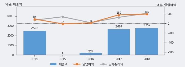 최근 3년간의 실적을 살펴보면 안정적 성장세를 보이고 있다. 최근 3년간 매출로 볼 때 매년 증가하고 있다. 다만 최근에 그 증가폭이 다소 감소하고 있다.