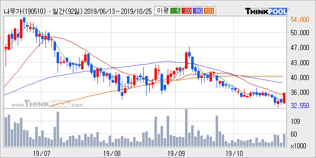 나무가의 2018년 매출액은 전년대비 21.5% 늘어난 3128억원이고, 영업이익은 흑자전환해서 19억원을 기록했다. 이 회사의 매출액 증감률과 영업이익 증감률은 각각 코스닥 상위 22%, 상위 16%에 해당된다.