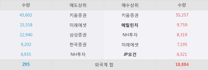 거래원 동향은 메릴린치, JP모건, NH투자 등이 매수 상위 목록에 위치하고 있다.