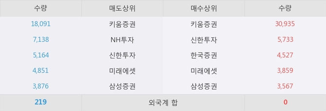 거래원 동향은 미래에셋, 삼성증권 등이 매수 상위 목록에 나타나고 있다.