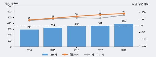 최근 3년간의 실적을 살펴보면 안정적 성장세를 보이고 있다. 최근 3년간 매출로 볼 때 매년 꾸준히 증가하고 있고 그 증가폭도 확대되고 있다.