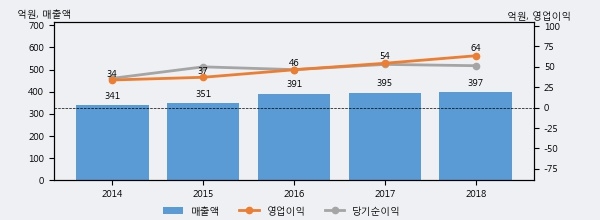 최근 3년간의 실적을 살펴보면 안정적 성장세를 보이고 있다. 최근 3년간 매출로 볼 때 매년 꾸준히 증가하고 있다. 다만 최근에 그 증가폭이 다소 감소하고 있다.