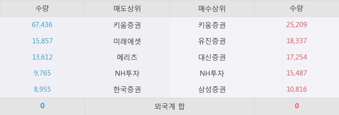거래원 동향은 미래에셋, 메리츠, NH투자 등이 매도 상위 목록에 나타나고 있다.