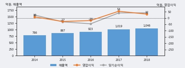 최근 3년간의 실적을 살펴보면 안정적 성장세를 보이고 있다. 최근 3년간 매출로 볼 때 매년 꾸준히 증가하고 있다. 다만 최근에 그 증가폭이 다소 감소하고 있다.