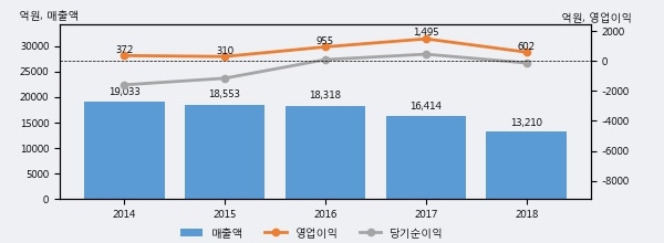 최근 3년간의 실적을 살펴보면, 매출액은 3년 연속 하락하고 있고 그 하락폭이 확대되고 있어서 투자자들은 주의깊게 살펴볼 필요가 있다.