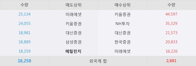 거래원 동향은 NH투자, 미래에셋 등이 매수 상위 목록에 나타나고 있다. 한편, 매도 창구 상위에는 메릴린치가 눈에 띄고 있다.