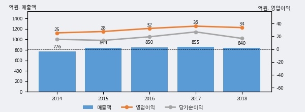 대주산업은 2018년 매출액 840억원과 영업이익 34억원을 기록했다. 전년대비 매출은 -1.7%, 영업이익은 -6.1% 각각 하락했다. 이 회사의 매출액 증감률과 영업이익 증감률은 각각 코스닥 하위 37%, 상위 50%에 해당된다.