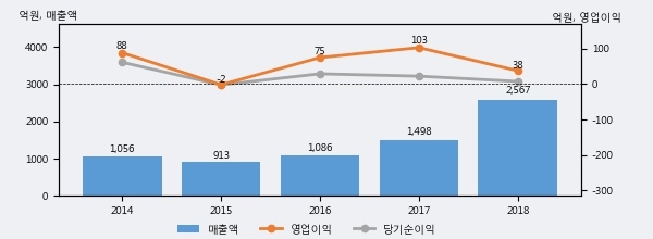 최근 3년간의 실적을 살펴보면 안정적 성장세를 보이고 있다. 최근 3년간 매출로 볼 때 매년 증가하고 있고 그 증가폭도 확대되고 있다.