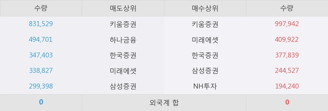 거래원 동향은 하나금융, 미래에셋, 삼성증권 등이 매도 상위 목록에 나타나고 있다.