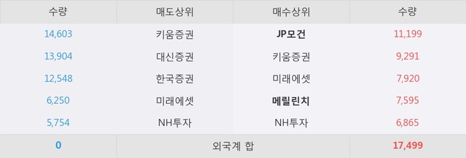 거래원 동향은 JP모건, 메릴린치, 미래에셋 등이 매수 상위 목록에 위치하고 있다.
