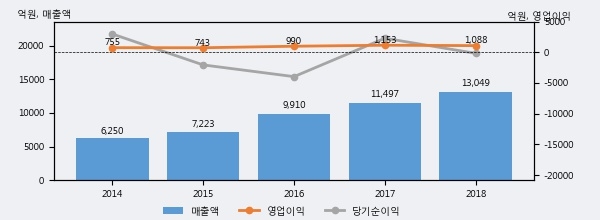 최근 3년간의 실적을 살펴보면 안정적 성장세를 보이고 있다. 최근 3년간 매출로 볼 때 매년 꾸준히 증가하고 있다. 다만 최근에 그 증가폭이 다소 감소하고 있다.