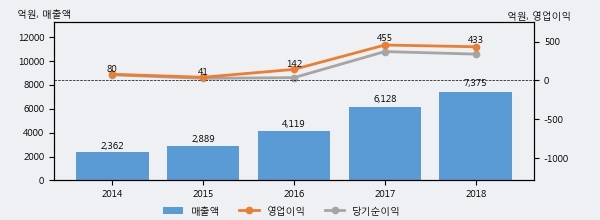 최근 3년간의 실적을 살펴보면 안정적 성장세를 보이고 있다. 최근 3년간 매출로 볼 때 매년 꾸준히 증가하고 있다. 다만 최근에 그 증가폭이 다소 감소하고 있다.