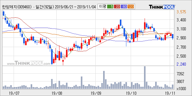한창제지는 2018년 매출액 2000억원과 영업이익 116억원을 기록했다. 전년대비 매출은 -0.4%, 영업이익은 -33.5% 각각 하락했다. 이 회사의 매출액 증감률과 영업이익 증감률은 각각 코스피 하위 33%, 하위 31%에 해당된다.