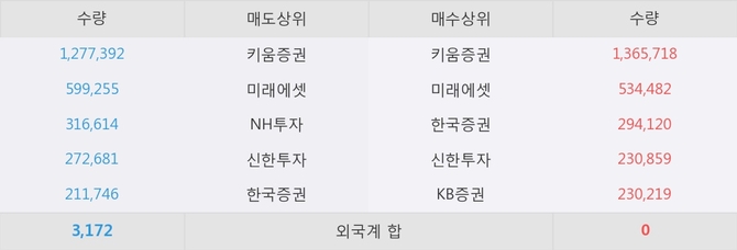 이 시각 주요 거래원은 미래에셋, 키움증권, 한국증권 등이 매수 상위 창구에 자리하고 있다.