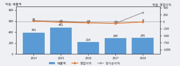 케이피엠테크의 2018년 매출액은 295억으로 전년대비 1.7% 상승했고, 영업이익은 -9억으로 전년에 이어 적자가 지속됐다. 이 회사의 매출액 증감률과 영업이익 증감률은 각각 코스닥 하위 45%, 상위 18%에 해당된다.