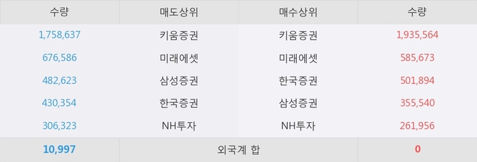 거래원 동향은 미래에셋, 삼성증권, NH투자 등이 매수 상위 목록에 나타나고 있다.