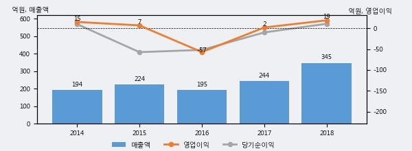 최근 실적을 살펴보면 2018년 매출액이 최근 5년 중 가장 높은 실적을 기록했음을 알 수 있다. 이전 최고 실적이었던 2017년 보다도 41.1%(100억 4천만원) 늘어난 것으로 나타났다.