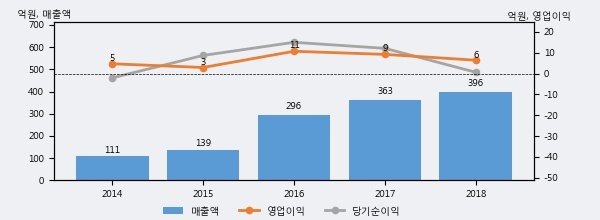 최근 3년간의 실적을 살펴보면 안정적 성장세를 보이고 있다. 최근 3년간 매출로 볼 때 매년 꾸준히 증가하고 있다. 다만 최근에 그 증가폭이 다소 감소하고 있다.