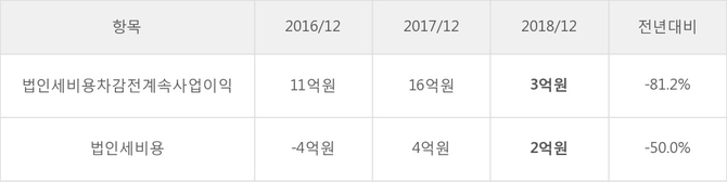 위즈코프의 지난 3년 동안 법인세 납부액 추이를 보면 2017년에는 증가했으나, 작년에는 2억원으로 감소했다.