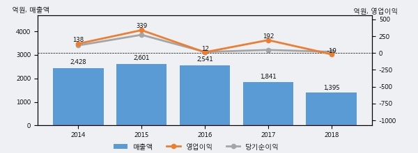 최근 3년간의 실적을 살펴보면, 매출액은 3년 연속 하락하고 있으나 그 하락폭은 줄어들고 있음을 알 수 있다.