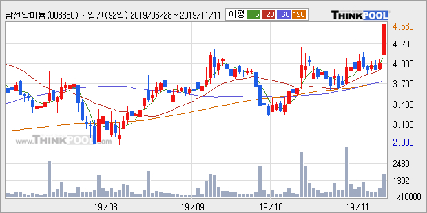 남선알미늄의 2018년 매출액은 전년대비 -13.2% 줄어든 3478억원이고, 영업이익 역시 전년대비 -54.6% 줄어든 94억원을 기록했다. 이 회사의 매출액 증감률과 영업이익 증감률은 각각 코스피 하위 9%, 하위 20%에 해당된다.