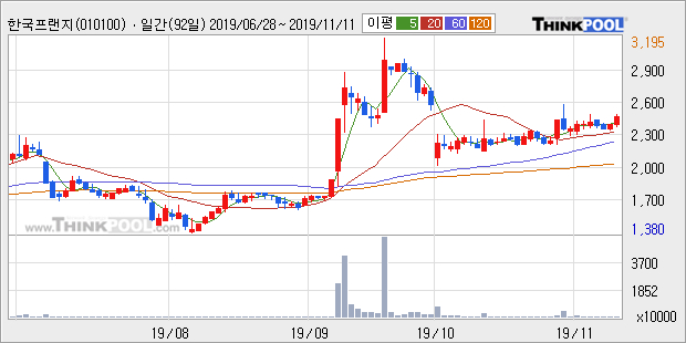 한국프랜지의 2018년 매출액은 7937억으로 전년대비 10.1% 상승했고, 영업이익은 20억으로 흑자전환했다. 이 회사의 매출액 증감률과 영업이익 증감률은 각각 코스피 상위 26%, 상위 11%에 해당된다.