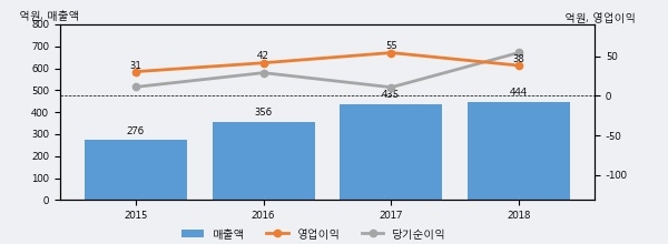 최근 3년간의 실적을 살펴보면 안정적 성장세를 보이고 있다. 최근 3년간 매출로 볼 때 매년 증가하고 있다. 다만 최근에 그 증가폭이 다소 감소하고 있다.