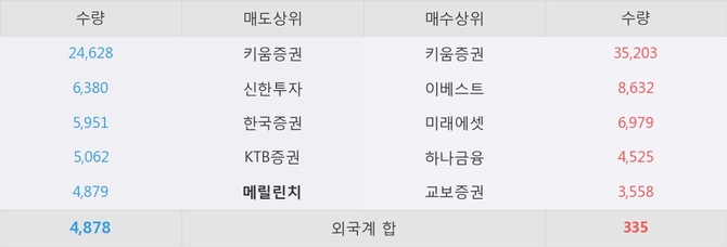 거래원 동향은 미래에셋, 하나금융 등이 매수 상위 목록에 나타나고 있다. 한편, 매도 창구 상위에는 메릴린치가 눈에 띄고 있다.