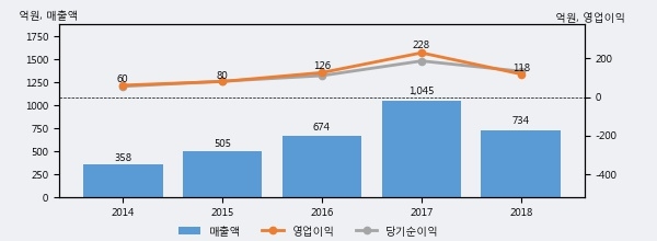 뉴파워프라즈마의 2018년 매출액은 전년대비 -29.7% 줄어든 734억원이고, 영업이익 역시 전년대비 -48.1% 줄어든 118억원을 기록했다. 이 회사의 매출액 증감률과 영업이익 증감률은 각각 코스닥 하위 7%, 하위 31%에 해당된다.