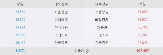 현재 거래원 동향을 보면 메릴린치와 CS증권이 각각 순매수 상위 창구 2위와 3위를 기록하고 있다.