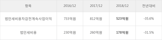 [표]엔에스쇼핑 법인세 납부 추이