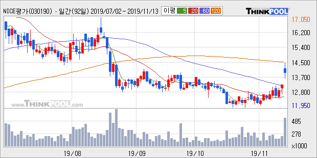 NICE평가정보는 2018년 매출액 3838억원과 영업이익 486억원을 기록했다. 전년대비 매출은 6.5%, 영업이익은 14.1% 각각 상승했다. 이 회사의 매출액 증감률과 영업이익 증감률은 각각 코스닥 상위 46%, 상위 38%에 해당된다.