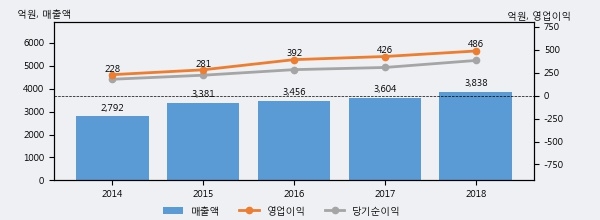 최근 3년간의 실적을 살펴보면 안정적 성장세를 보이고 있다. 최근 3년간 매출로 볼 때 매년 꾸준히 증가하고 있고 그 증가폭도 확대되고 있다.