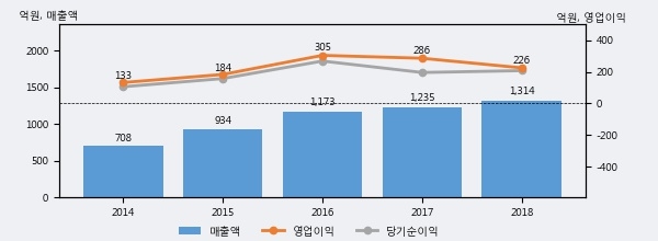 최근 3년간의 실적을 살펴보면 안정적 성장세를 보이고 있다. 최근 3년간 매출로 볼 때 매년 꾸준히 증가하고 있고 그 증가폭도 확대되고 있다.