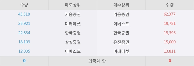 이 시각 주요 거래원은 미래에셋, 키움증권, 이베스트 등이 매수 상위 창구에 자리하고 있다.