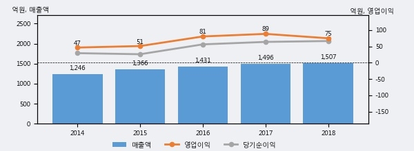 최근 3년간의 실적을 살펴보면 안정적 성장세를 보이고 있다. 최근 3년간 매출로 볼 때 매년 꾸준히 증가하고 있다. 다만 최근에 그 증가폭이 다소 감소하고 있다.