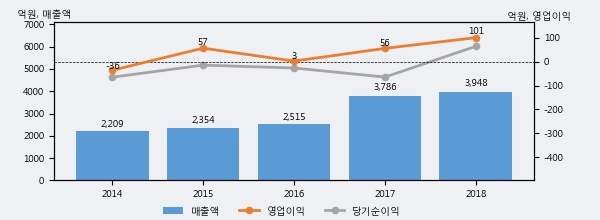 최근 3년간의 실적을 살펴보면 안정적 성장세를 보이고 있다. 최근 3년간 매출로 볼 때 매년 꾸준히 증가하고 있다. 다만 최근에 그 증가폭이 다소 감소하고 있다.